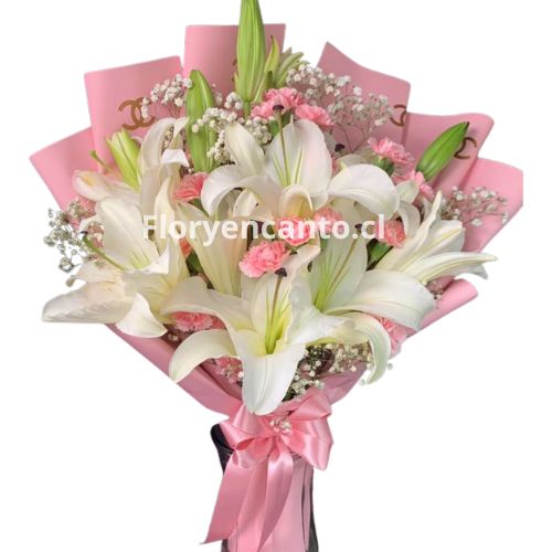 Ramo de liliums Blancos y Claveles Rosados Brisa de Primavera