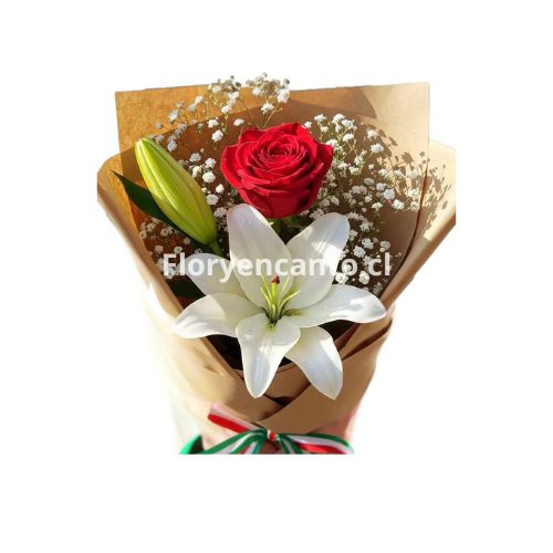 Un delicado encuentro entre la pureza del lilium y la pasión de la rosa. Dos flores que, al unirse, expresan el equilibrio perfecto entre ternura y deseo. Ideal para regalar a quien llena tu vida de belleza y emoción. Entrega a domicilio en Santiago de Chile.